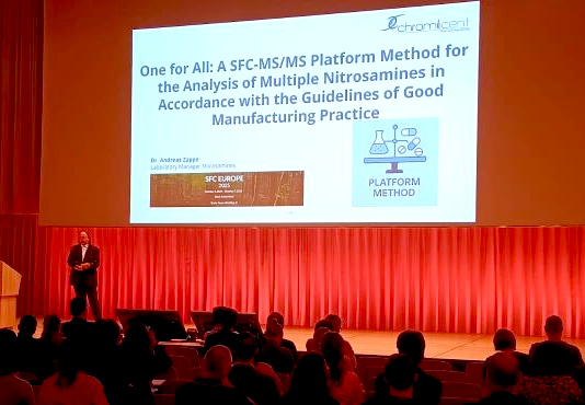 Dr. Andreas Zappe stellte in einem Vortrag unsere „One for all“-Plattformmethode vor, welche unter GMP mittels SFC-MS/MS eine Vielzahl von Nitrosaminen detektiert.